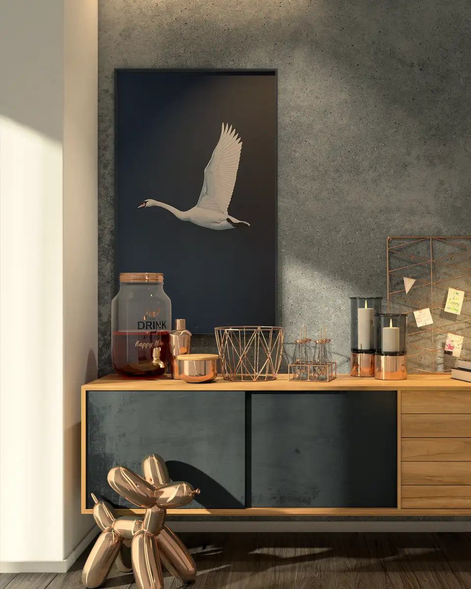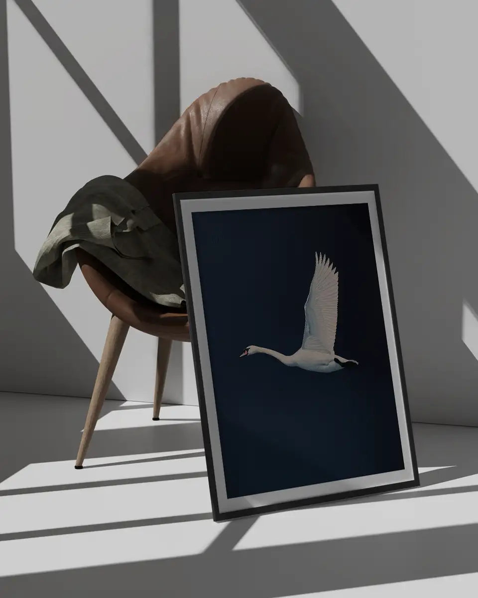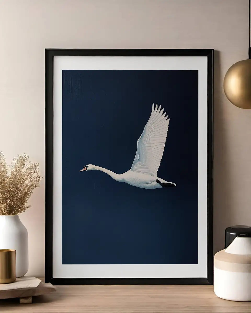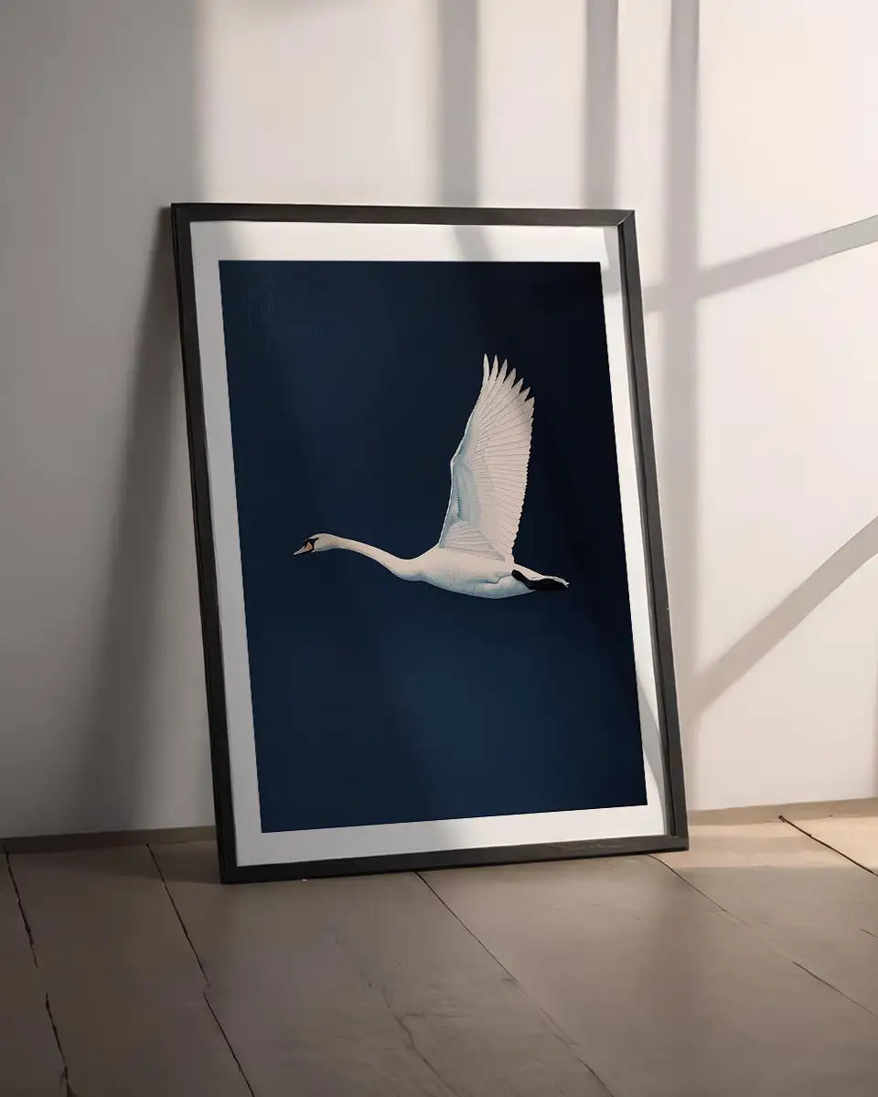Poster - Vliegende zwaan - Marineblauw - Wayne Thiebaud