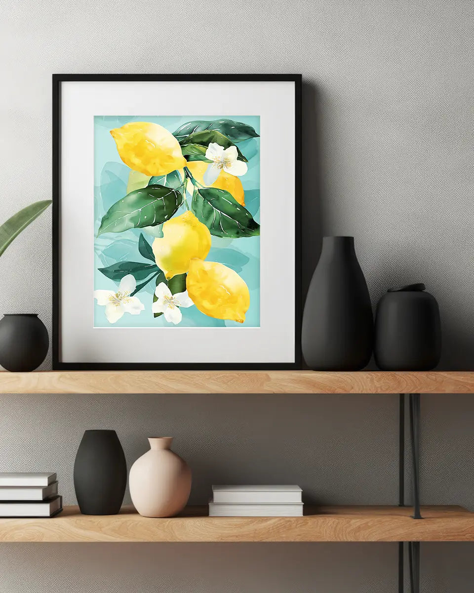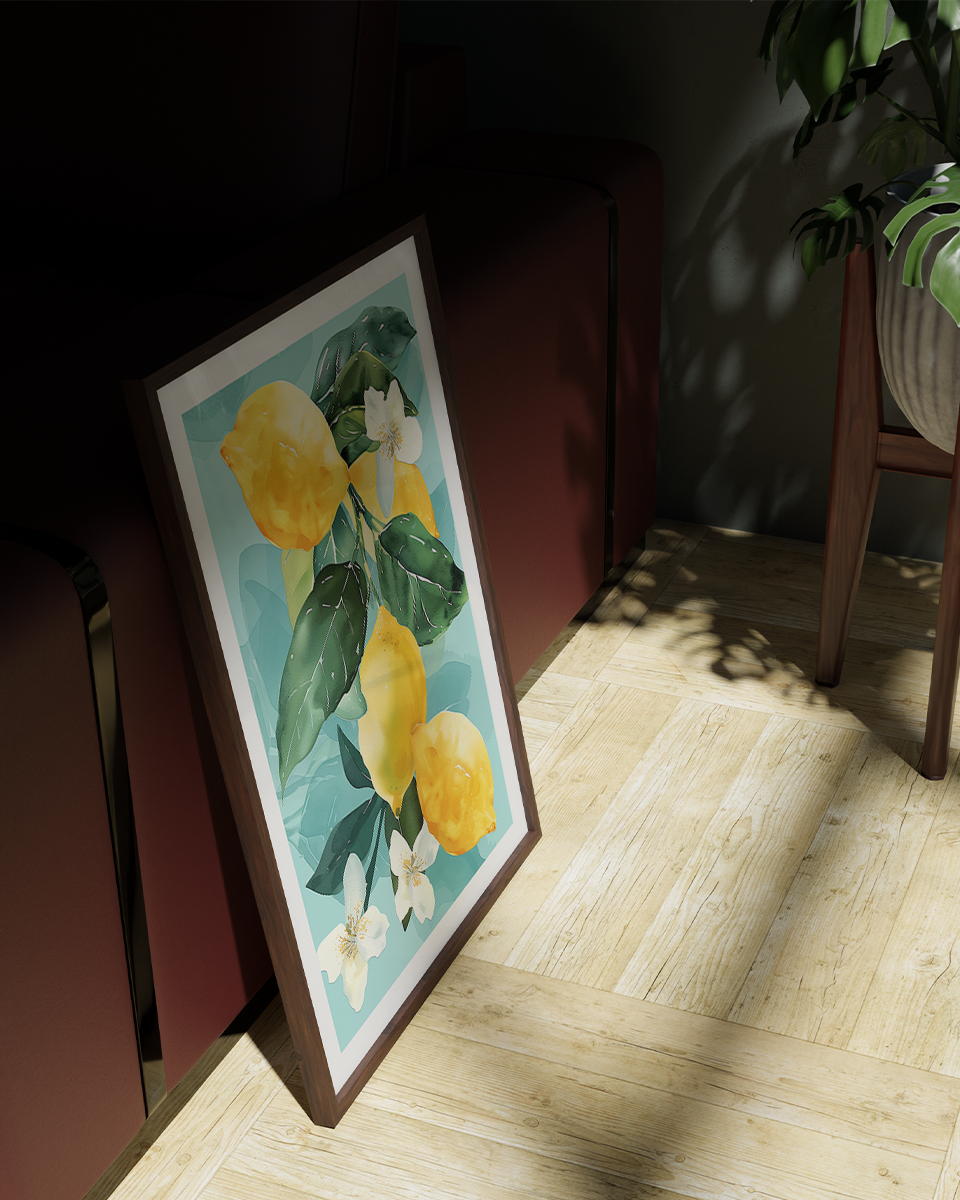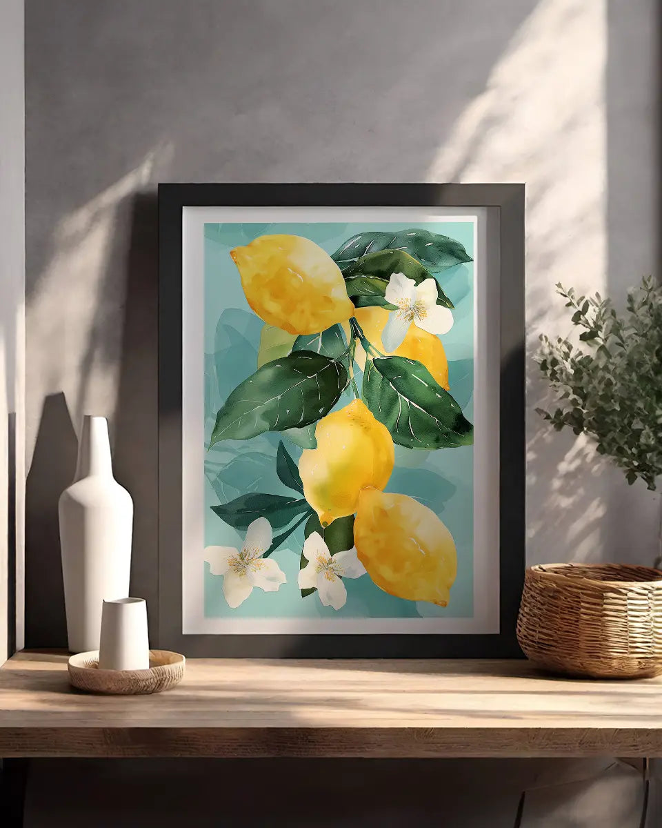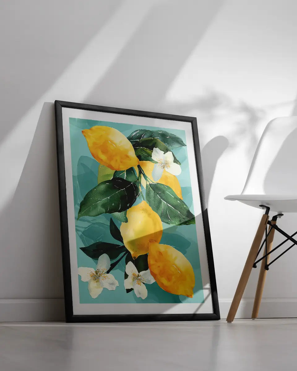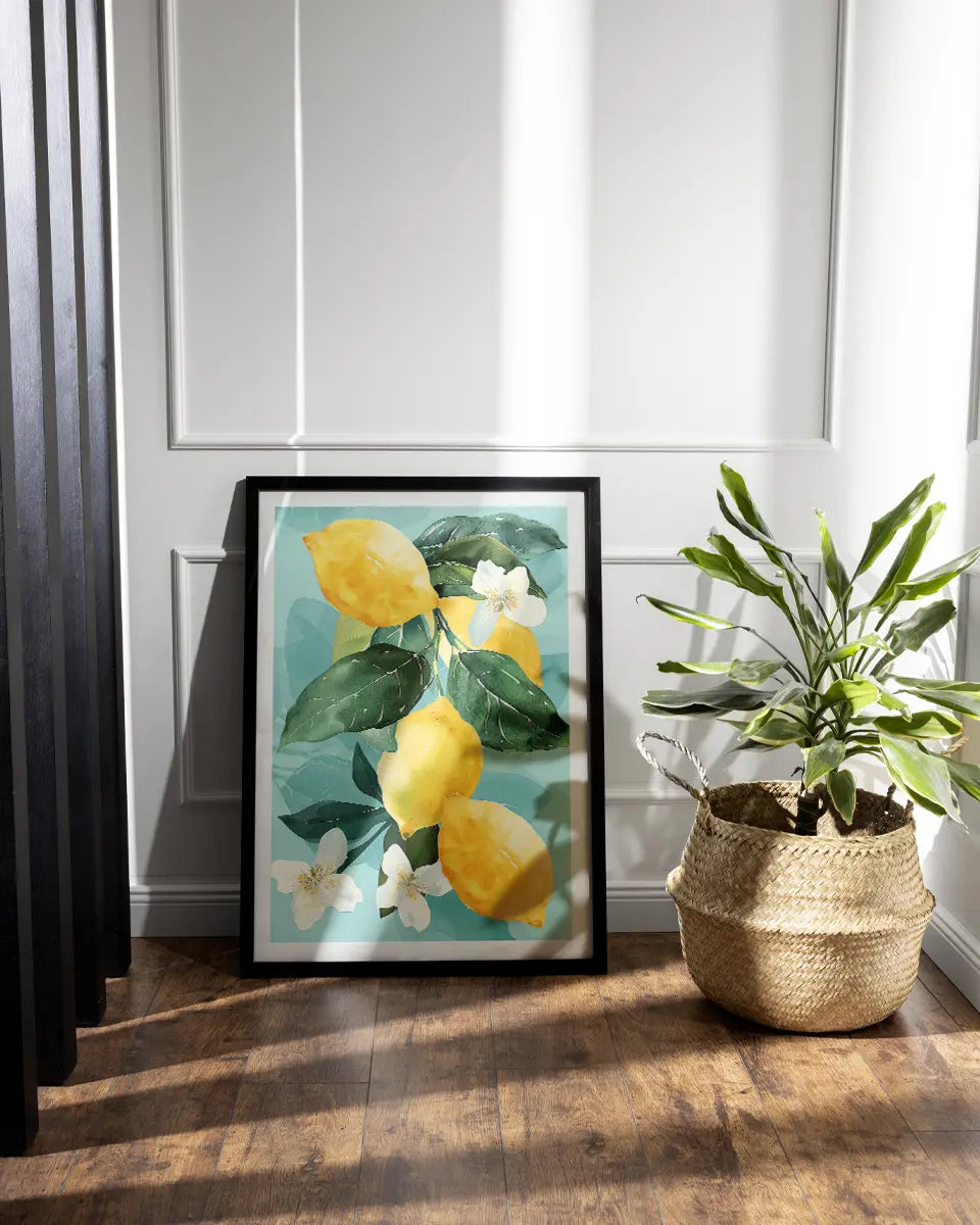 Of je nu een kunstliefhebber bent die op zoek is naar het perfecte stuk om je collectie uit te breiden, of gewoon iemand die je huis een frisse en vrolijke uitstraling wil geven, deze poster is een uitstekende keuze. De tijdloze charme van citroenen en bloemen, gecombineerd met de moderne en levendige kleuren, maakt het een kunstwerk dat nooit uit de mode raakt.