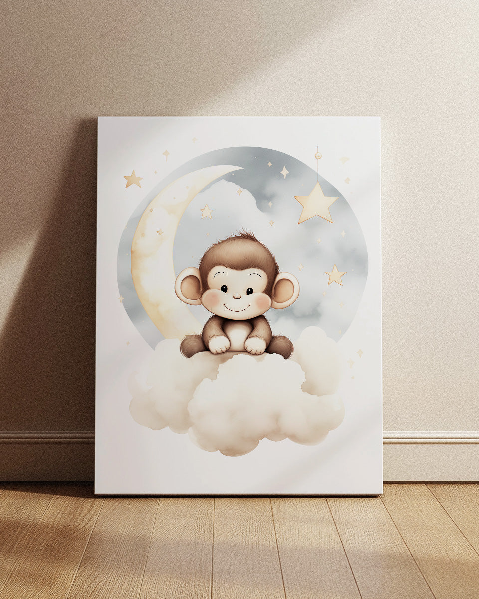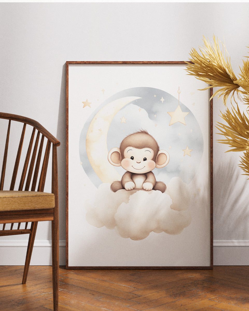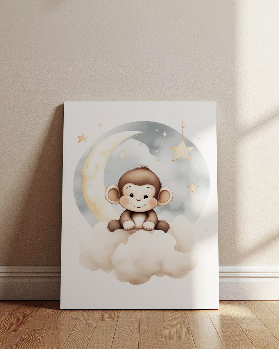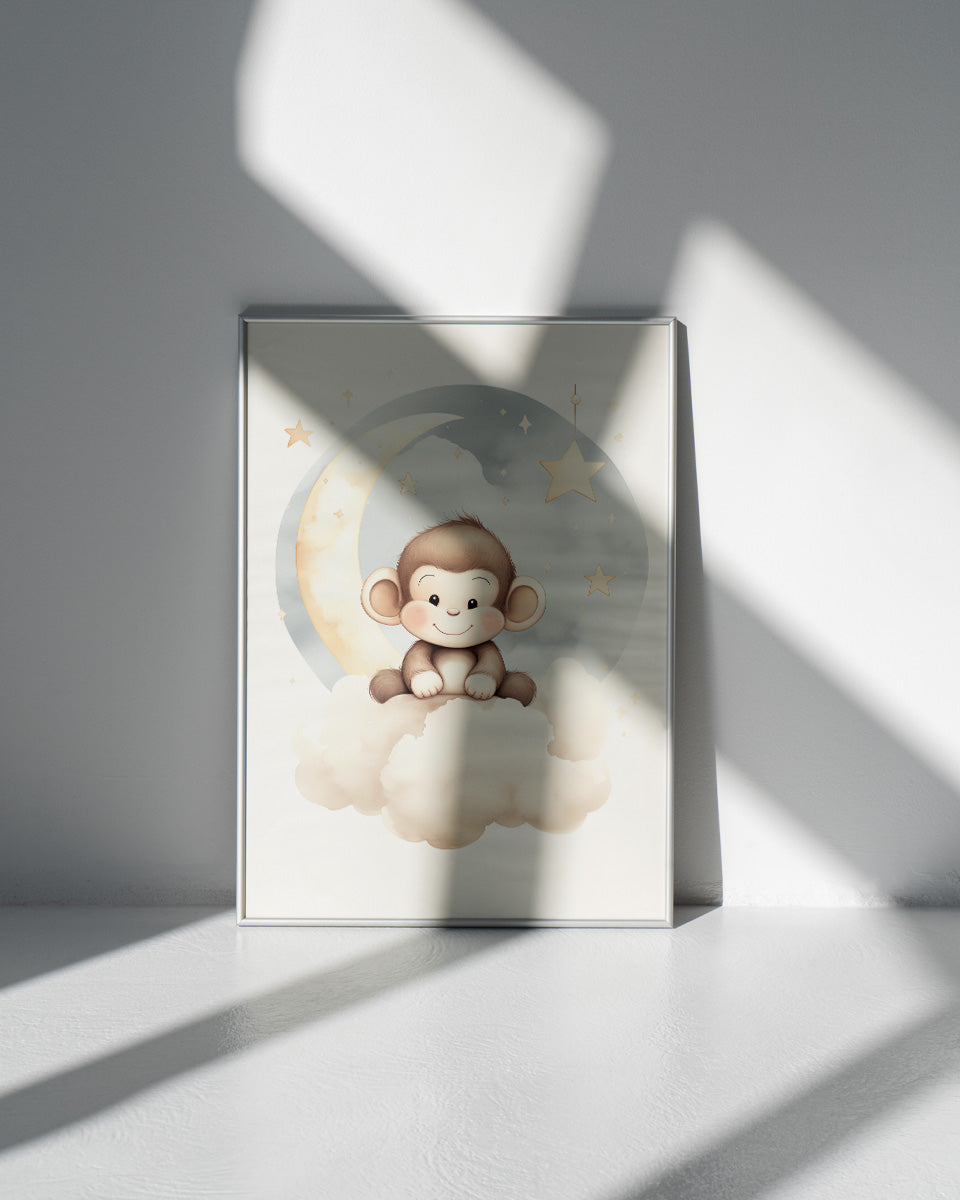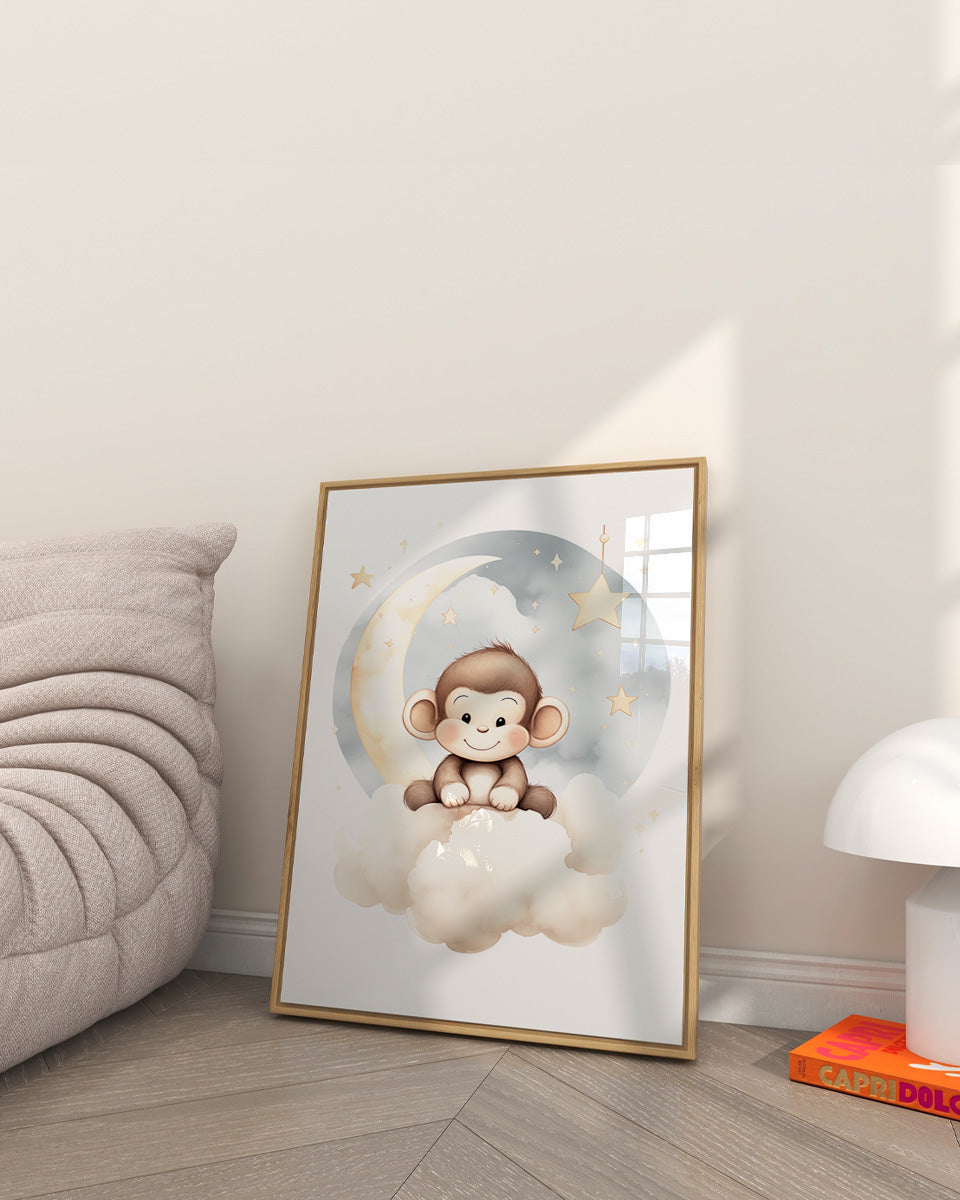 Poster - Kinderkamer Aapje op wolken