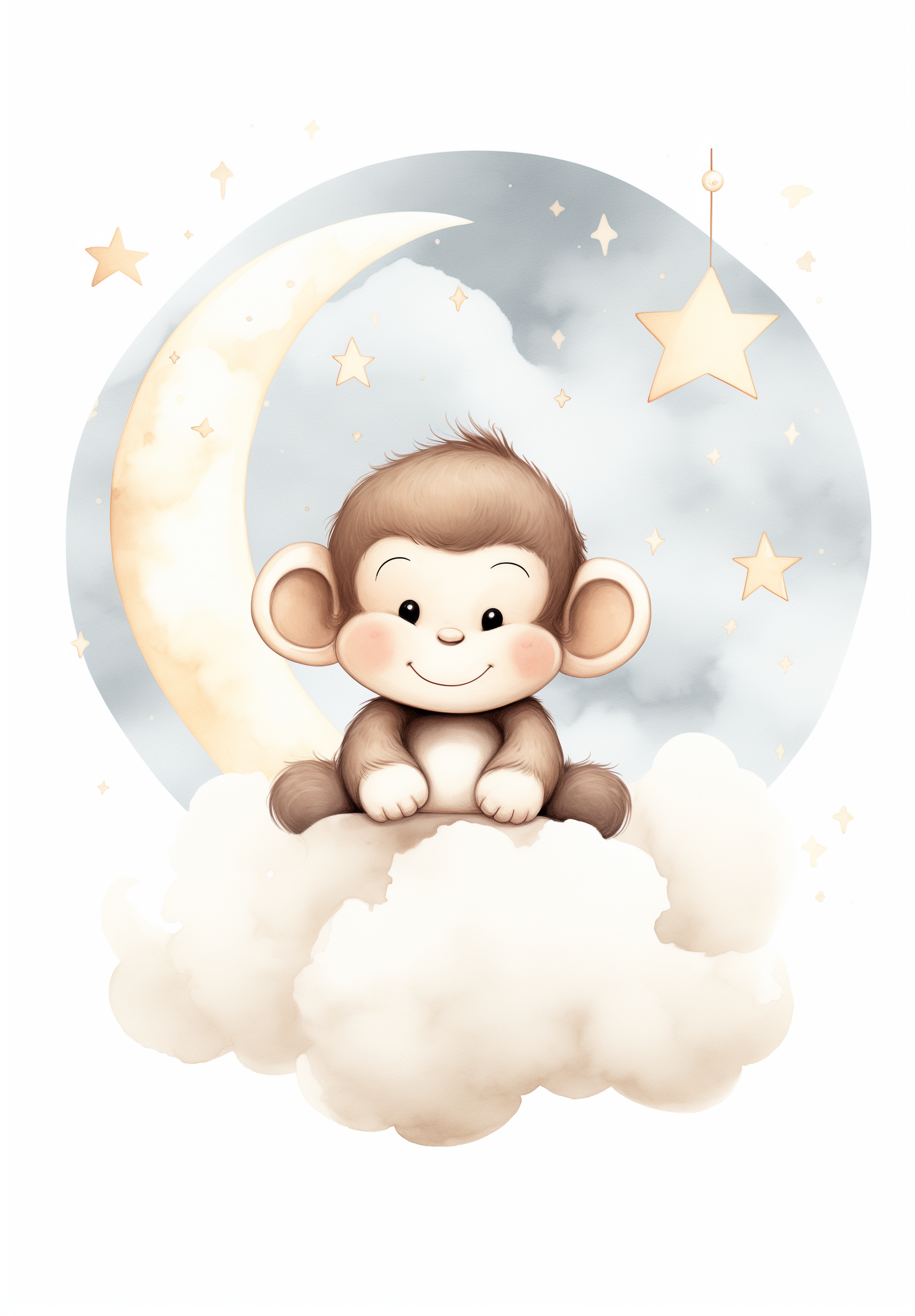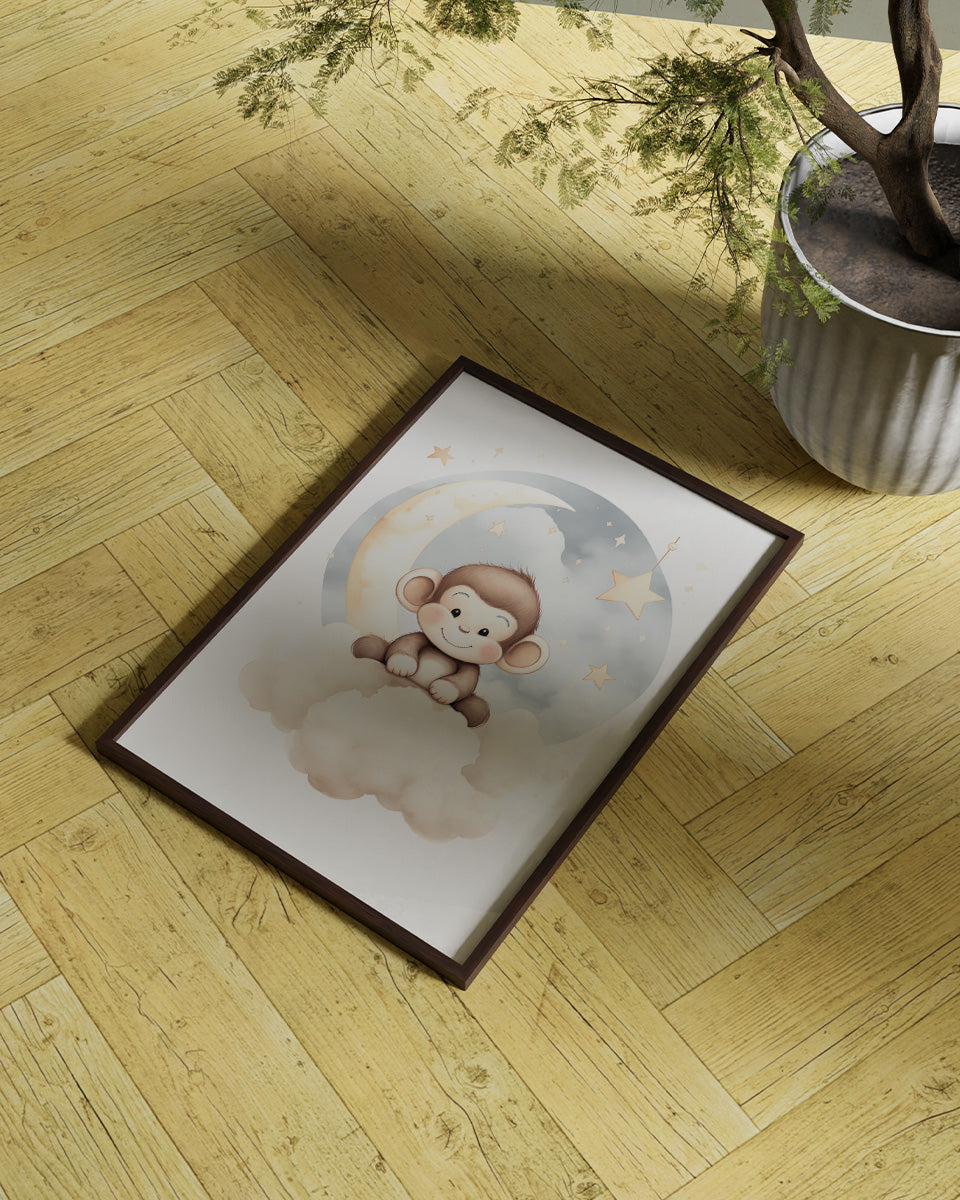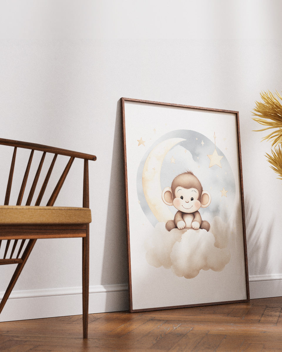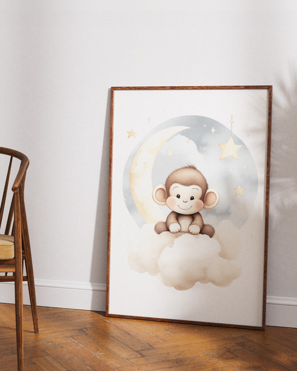 Poster - Kinderkamer Aapje op wolken