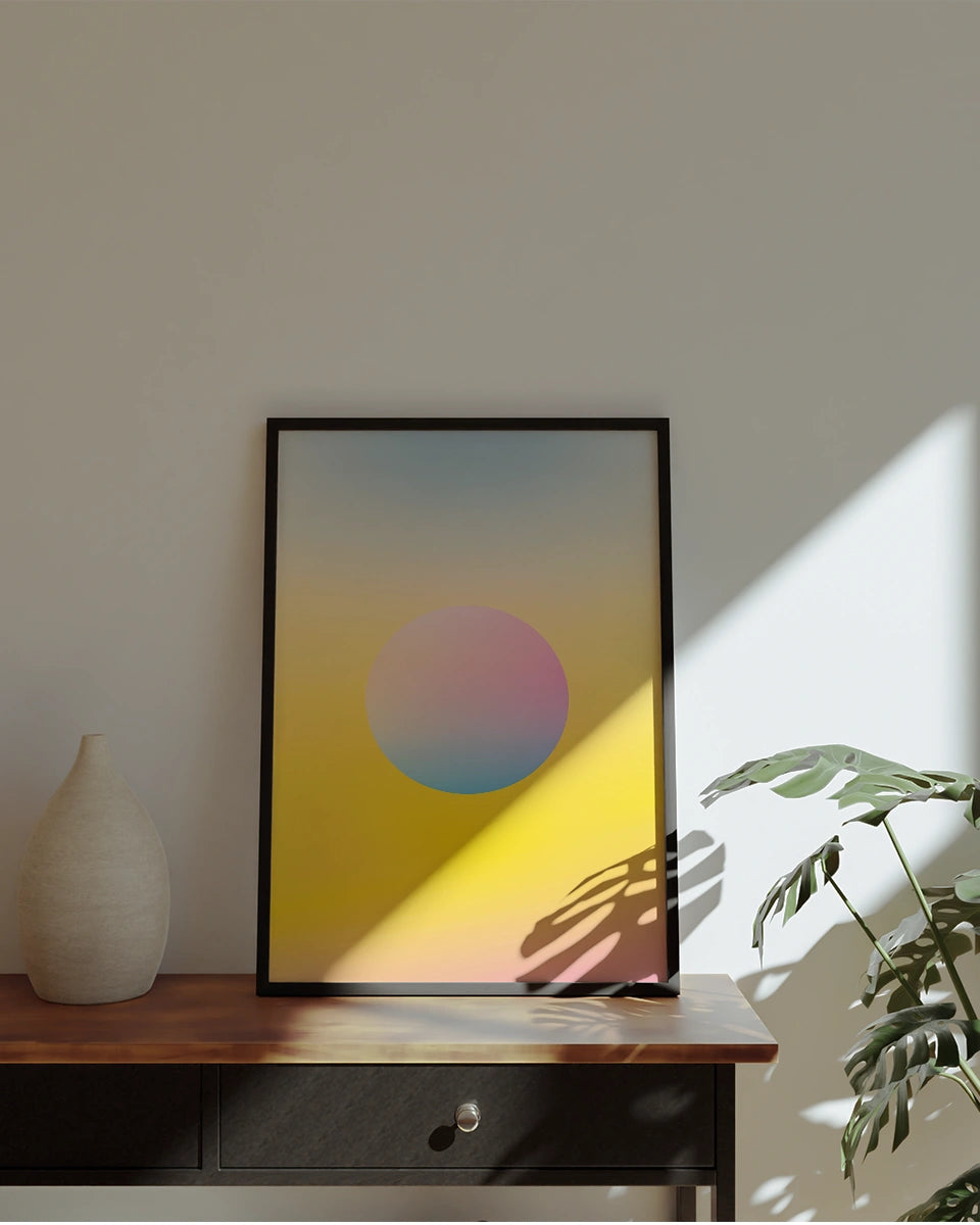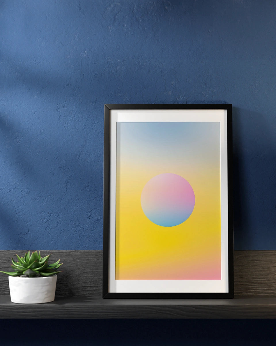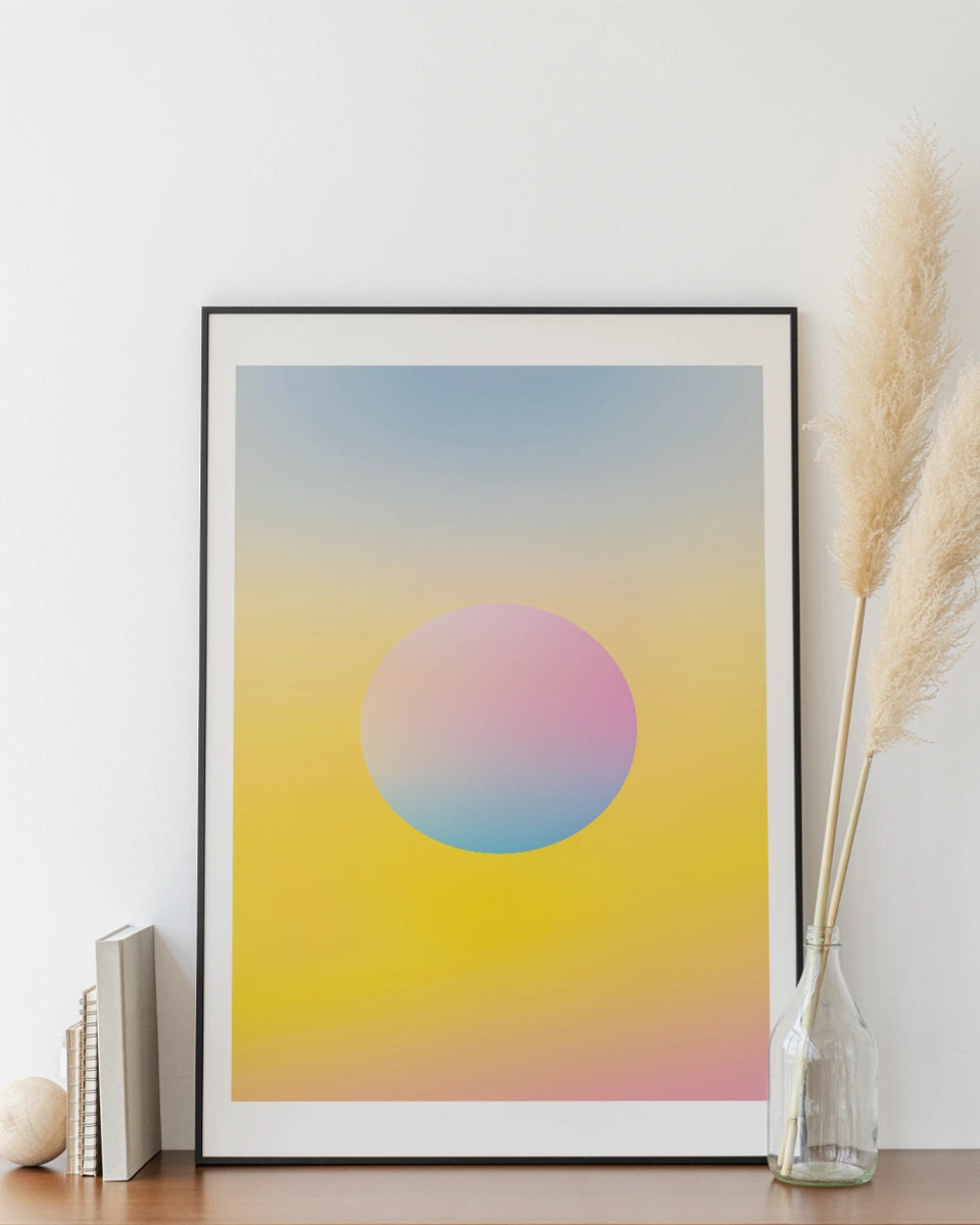 Poster - Cirkel Gradient - Geel, blauw en roze - James Turrell