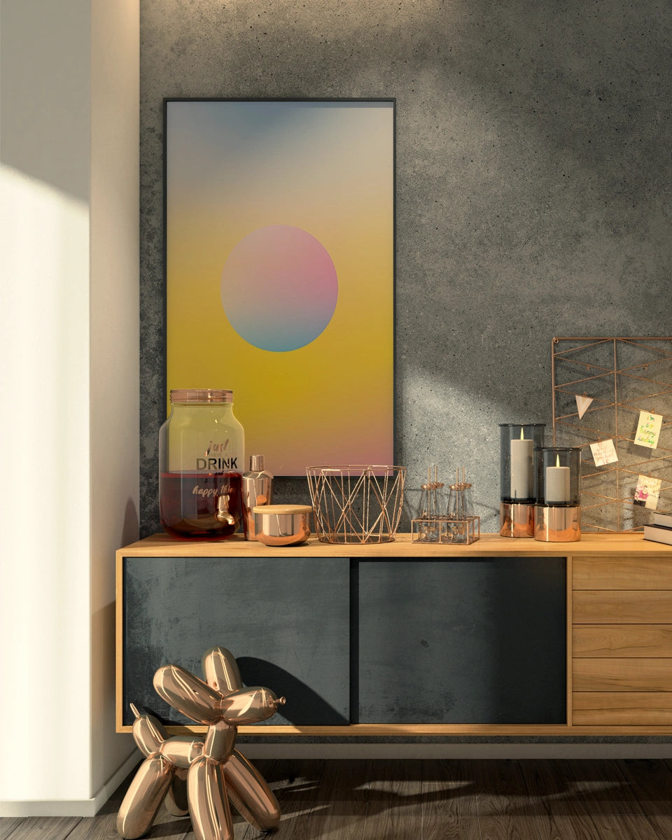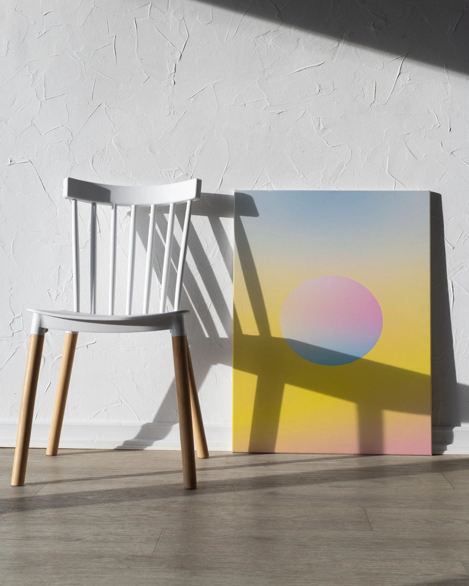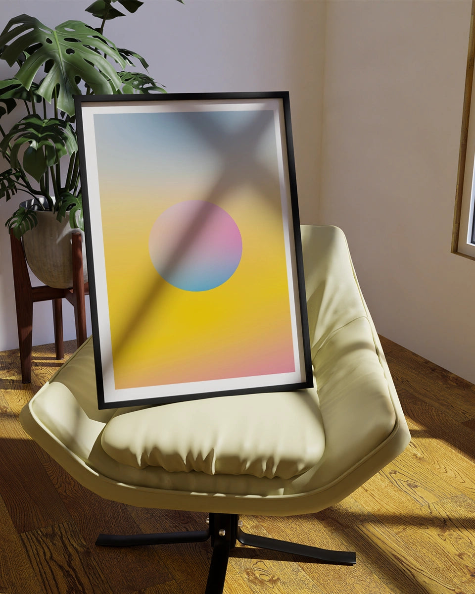 Poster - Cirkel Gradient - Geel, blauw en roze - James Turrell