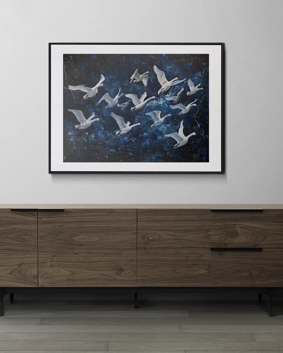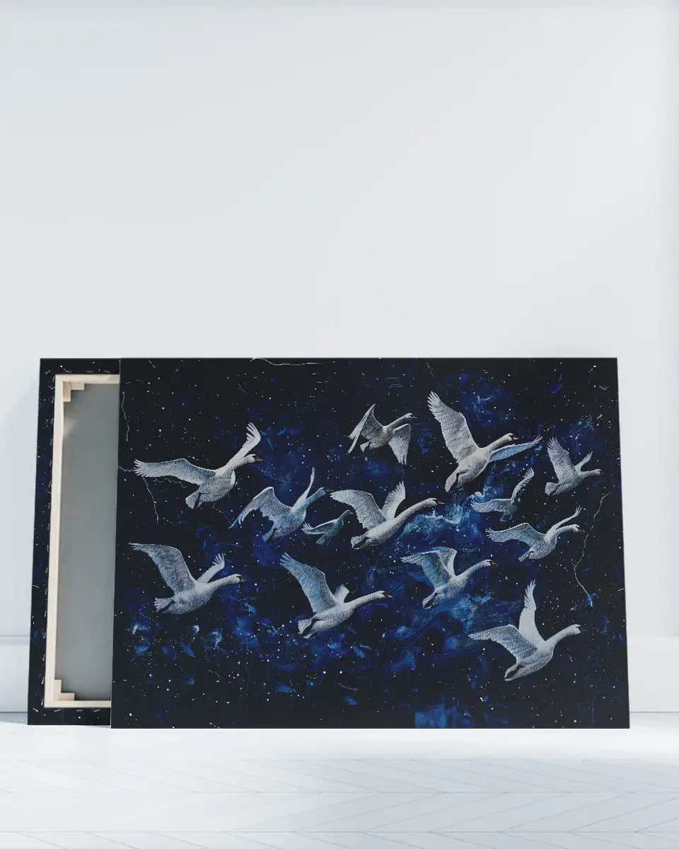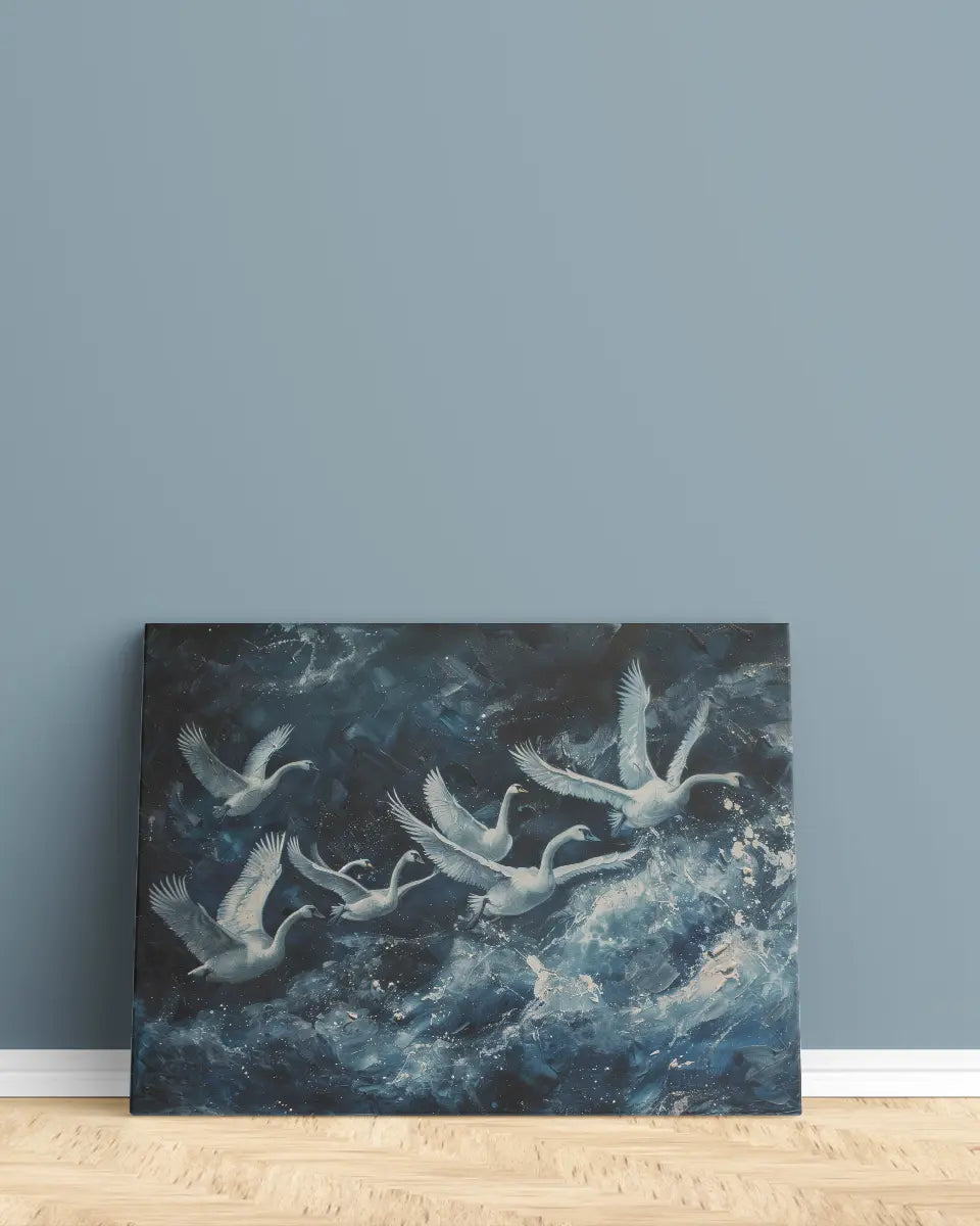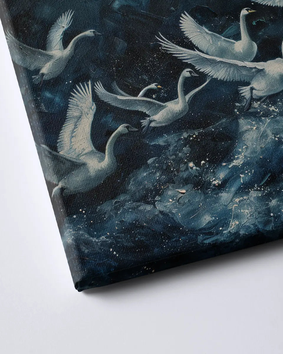 Canvas - Schilderij Zwanen - Impressionisme - Donkerblauw