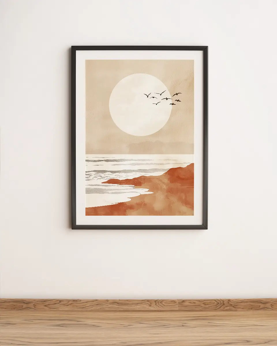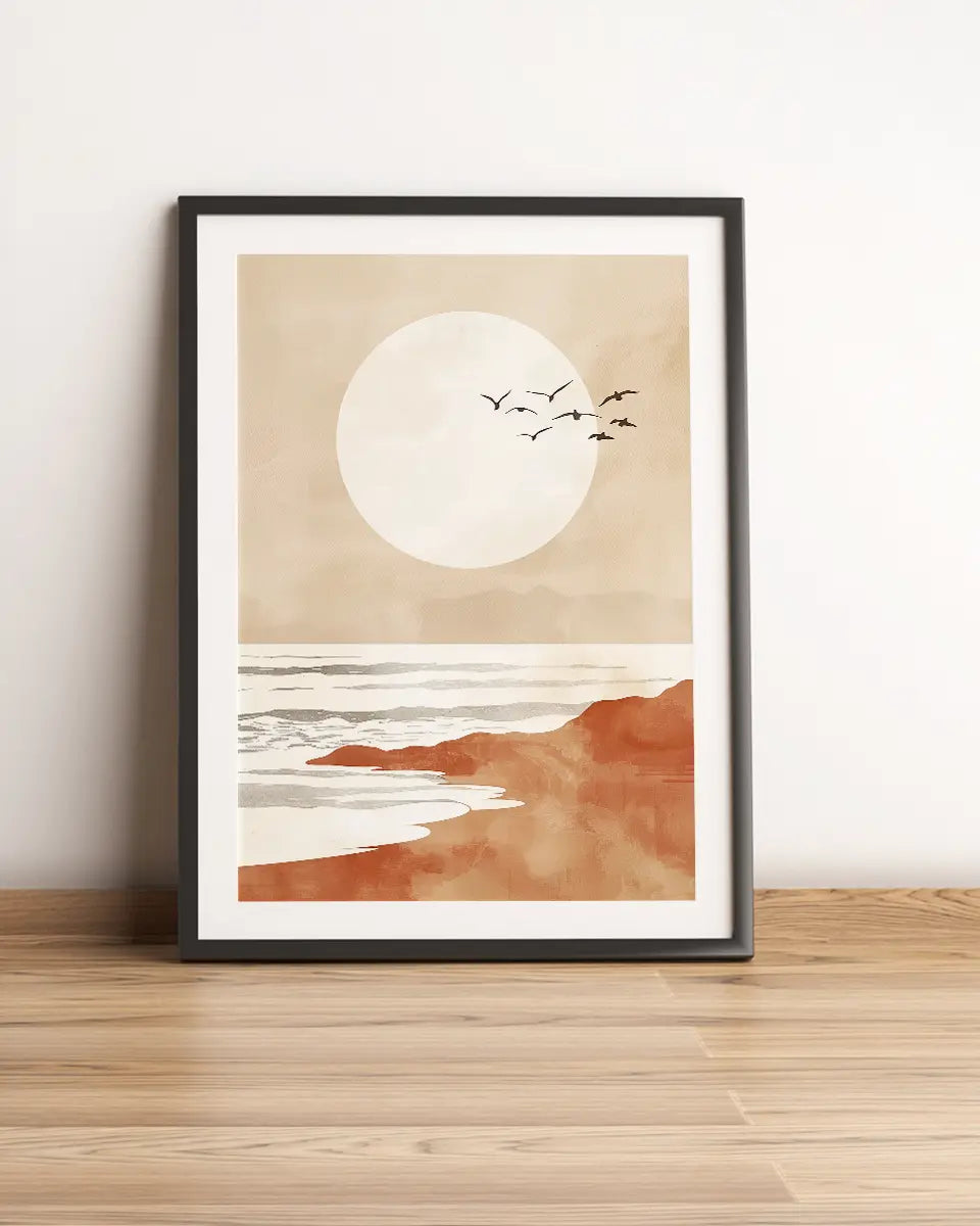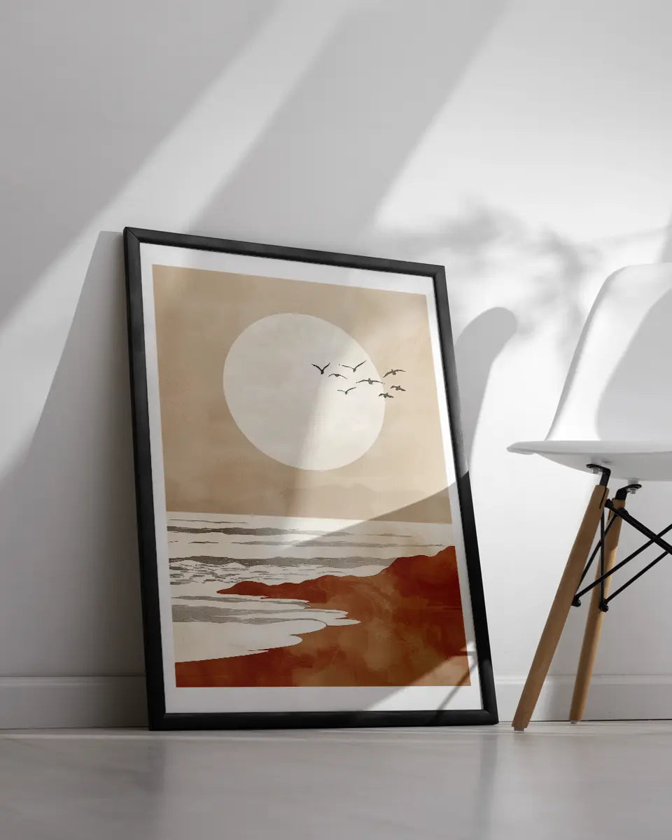 Poster - Vogels over het strand - Minimalistisch - Bohemian