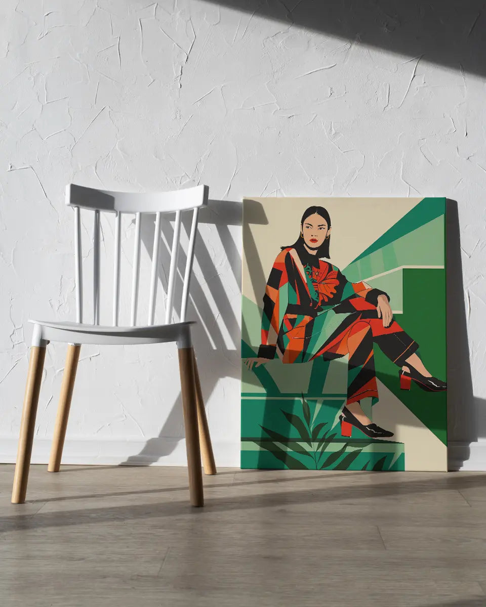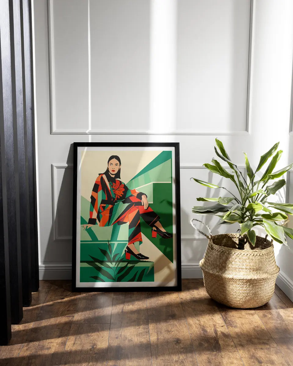 Poster - Aziatische vrouw - Zittend - Op-art - Geometrisch