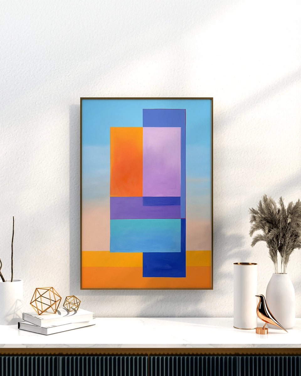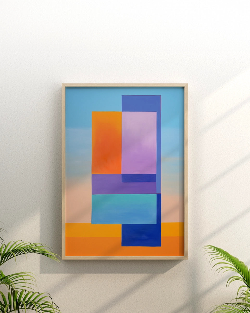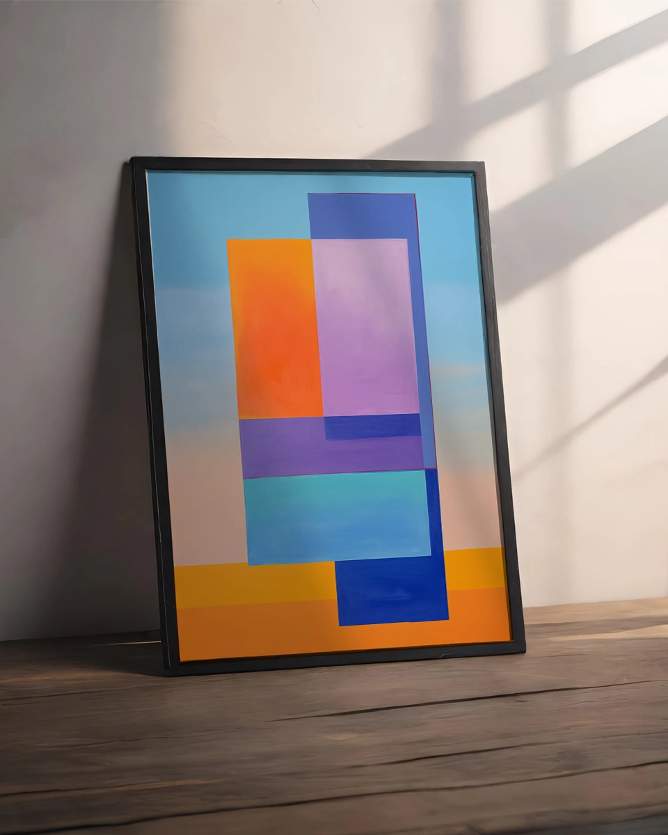 Minimalistisch- Geometrische Compositie - Blauwe en Oranje Vierkanten